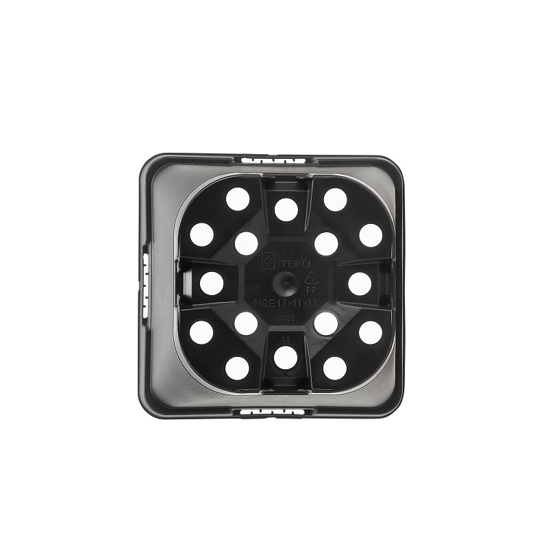 Disponen de un sistema especial de drenaje con ranuras que evitan que pase la perlita, también tiene unas pestañas que las separan del suelo evitando encharcamientos, esta pestañas están cololadas de forma que sirven tambien como Sistema Antiapilamiento, haciendo más facil separarlas unas de otras cuando se encuantran apiladas.