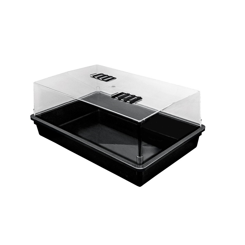 Este invernadero se utiliza principalmente para la germinación de semillas, y enraizado de esquejes. Con ayuda de unos tubos fluorescente podemos iniciar el cultivo, y enraizar los esquejes. Los mini-invernaderos son propagadores de plástico duro de alta calidad. Son dos piezas: una base bandeja resisteEste invernadero se utiliza principalmente para la germinación de semillas, y enraizado de esquejes. Con ayuda de unos tubos fluorescente podemos iniciar el cultivo, y enraizar los esquejes. Los mini-invernaderos son propagadores de plástico duro de alta calidad. Son dos piezas: una base bandeja resistente y una cúpula de metraquilato con dos ventanas de ventilación en la parte superior.